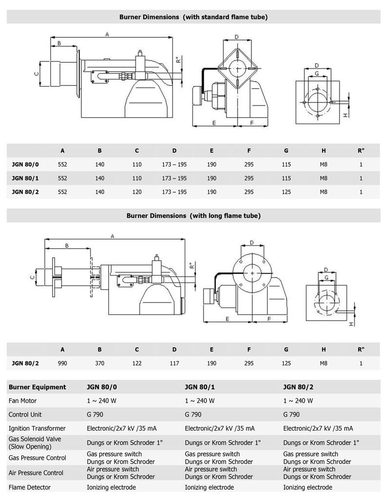 Single Stage Gas Burners: JGN 80/0 JGN 80/1 JGN 80/2