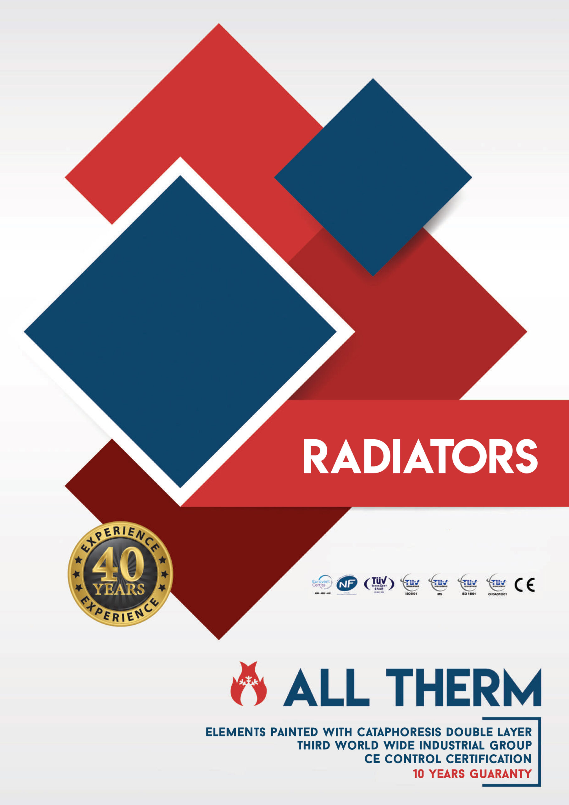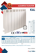 Ideal Aluminium Radiator for Central Heating. ALL THERM produces KAL radiator elements with die-cast aluminium alloy, then doubly painted through an anti corrosion layer via a cataphoresis process and then the second treatment is a painting coat “epoxi” followed by a high temperature drying process for a perfect finish. A whole process which is the most advanced and up-to-date technology that uses a strict CE EN-442 certified and manufacturing controlled by TUV and Eurovent Certita.  These processes ensure a perfect finish and very high durability over time.