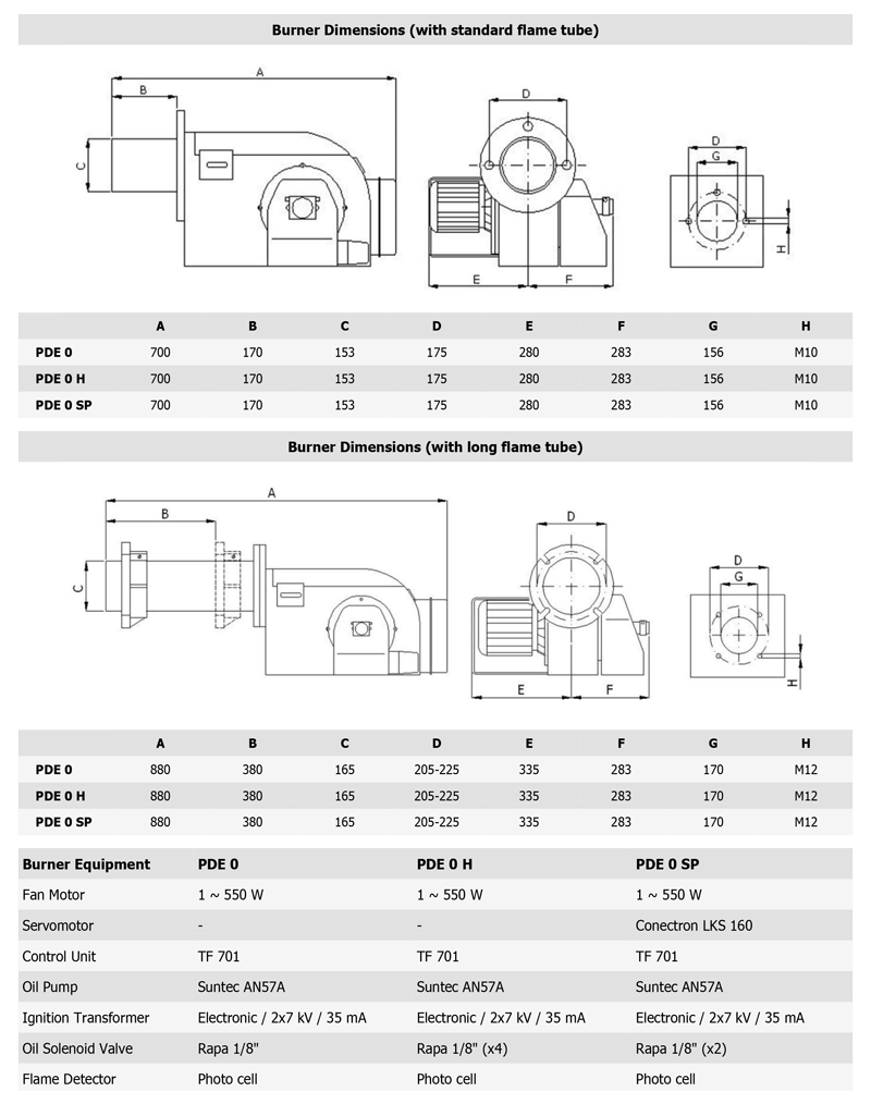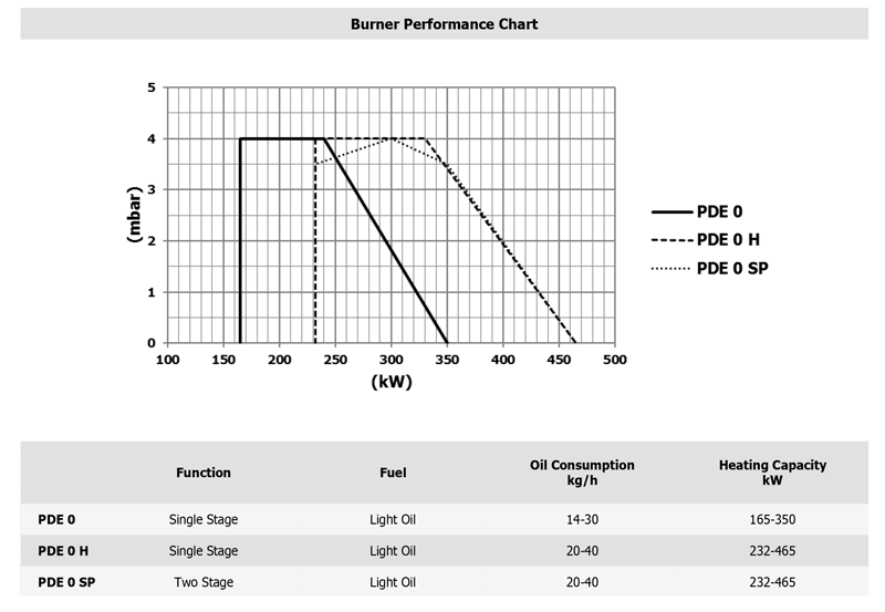 Fuel: Light oil. Oil consumption 14-40 kg/h. Heating capacity from 165-465 kW.