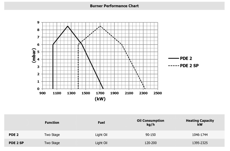Fuel: Light oil. Oil consumption 90-150 kg/h. Heating capacity from 1046-1744 kW.