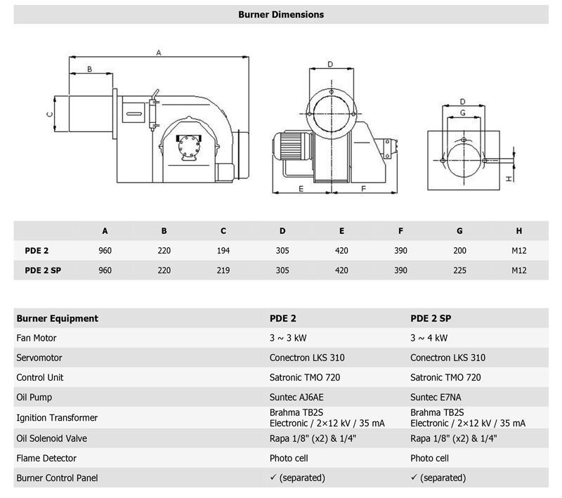 Fuel: Light oil. Oil consumption 90-200 kg/h. Heating capacity from 1046-2325 kW.